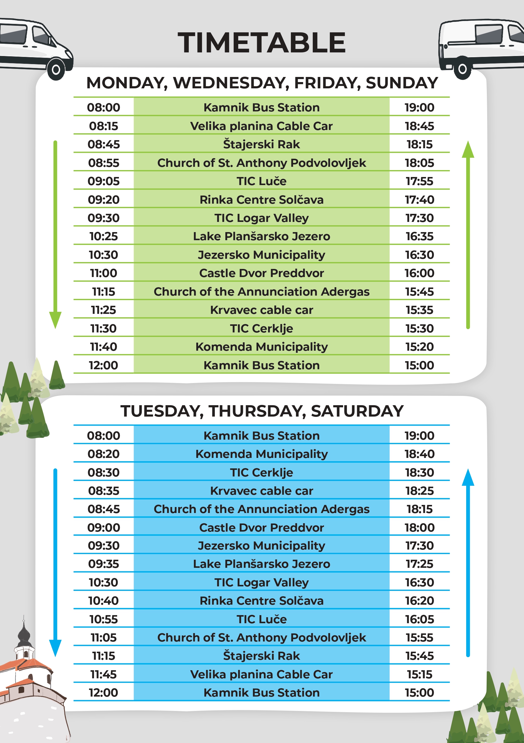 Thank you for joining us this season on a circular ride and for discovering the most beautiful corners of the Kamnik-Savinja Alps in an eco-friendly way – with the Hop on – Hop off electric vehicle!